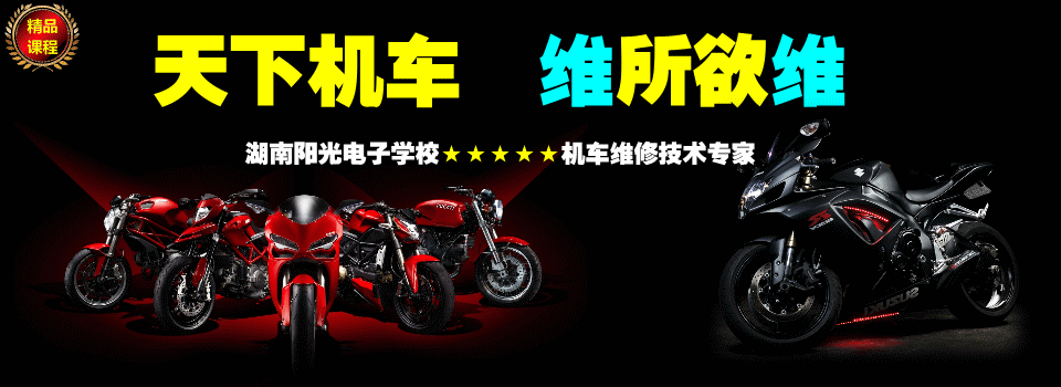 學(xué)校簡(jiǎn)介:湖南陽(yáng)光電子技術(shù)學(xué)校是全國(guó)最早開(kāi)辦摩托車(chē)、電動(dòng)車(chē)維修專(zhuān)業(yè)的技術(shù)培訓(xùn)的老牌名校,以為社會(huì)上培養(yǎng)好成千上萬(wàn)名高級(jí)摩托車(chē),電動(dòng)車(chē)的維修技術(shù)的人才。我校辦學(xué)已20年之久,擁有齊備的電動(dòng)車(chē)維修、摩托車(chē)維修培訓(xùn)教學(xué)設(shè)備,資深的電動(dòng)車(chē)維修、摩托車(chē)維修培訓(xùn)教師團(tuán)隊(duì),是一所專(zhuān)業(yè)技術(shù)一流、教學(xué)方法獨(dú)特、快速培養(yǎng)實(shí)用技能人才的品牌電動(dòng)車(chē)維修、摩托車(chē)維修學(xué)校。我校學(xué)員技術(shù)合格率高。我們的目標(biāo)是:“培訓(xùn)一個(gè)、合格一個(gè)、就業(yè)一個(gè)”。常年面向全國(guó)招生,百分百安置就業(yè)。采用我校多年來(lái)獨(dú)創(chuàng)的“模塊教學(xué)法”,理論與實(shí)踐相結(jié)合、原理+圖紙+機(jī)器三位一體的教學(xué)模式,半天理論,半天實(shí)踐,通俗易懂,確保無(wú)任何基礎(chǔ)者也能全面掌握維修技能、成為同行業(yè)中的佼佼者。學(xué)校實(shí)力雄厚,教學(xué)設(shè)備一應(yīng)具齊,學(xué)校的專(zhuān)業(yè)老師均具本科以上學(xué)歷,具有豐富的專(zhuān)業(yè)知識(shí)與維修經(jīng)驗(yàn),軟硬件實(shí)力相當(dāng)強(qiáng)勁。包教包會(huì)包工作(一期不會(huì),免費(fèi)學(xué)會(huì)止)。高級(jí)摩托車(chē)、電動(dòng)車(chē)維修技師任教。摩托車(chē)、電動(dòng)車(chē)制造廠(chǎng)提供技術(shù)支持。讓學(xué)生從實(shí)踐之中找故障,拆裝之中學(xué)原理!澳K教學(xué)法”和“五步教學(xué)法”讓學(xué)生快速成才。教修車(chē)絕技,培養(yǎng)修車(chē)高手。