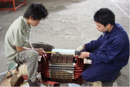 2,學(xué)習(xí)直流電機(jī)、三相交流異步電機(jī)、單相交流異步電機(jī)、電動(dòng)工具的構(gòu)造原理.解剖三相電機(jī)、單相電機(jī)、多速電機(jī)、潛水泵電機(jī)、串激電機(jī)接線原理和規(guī)律。繪制各式電機(jī)的展開圖、接線圖、為大修電機(jī)定子繞組做好理論上的準(zhǔn)備。在操作技能方面,邊學(xué)習(xí)邊實(shí)踐,拆除舊繞組、記錄數(shù)據(jù)、定模具、纏繞線圈、嵌線、接線、浸漆、裝配、實(shí)驗(yàn)、熟練掌握大修電機(jī)的工藝流程。